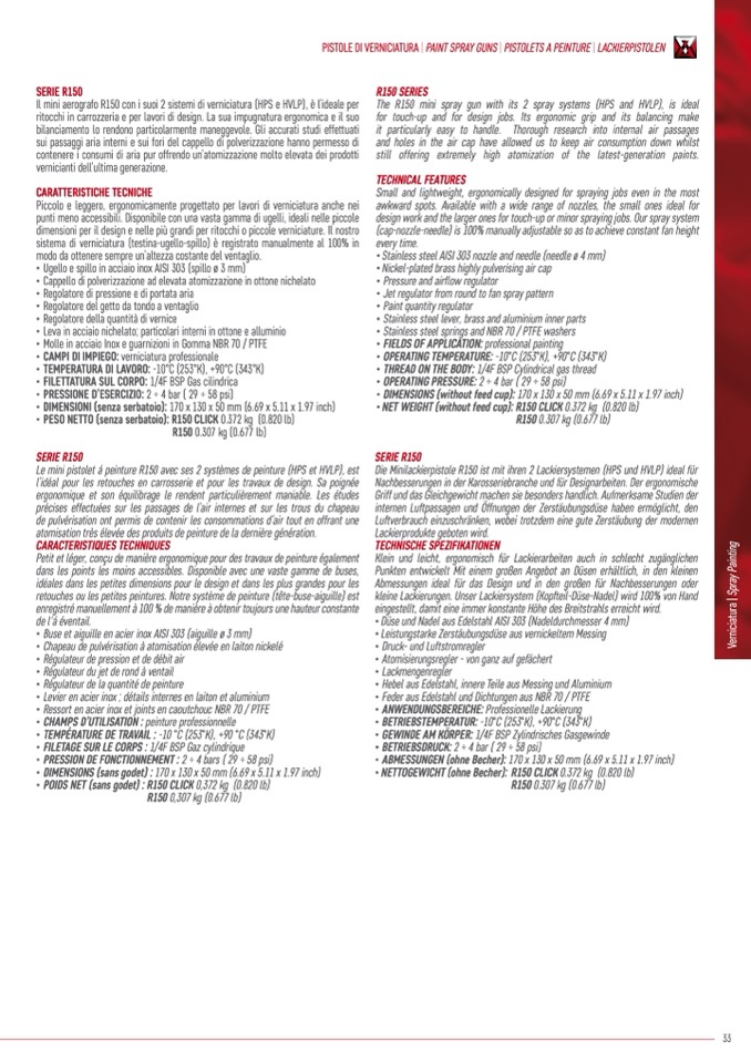 PISTOLE DI VERNICIATURA | PAINT SPRAY GUNS | PISTOLETS A PEINTURE | LACKIERPISTOLEN