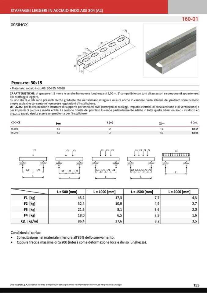 STAFFAGGI LEGGERI IN ACCIAIO INOX AISI 304 (A2)