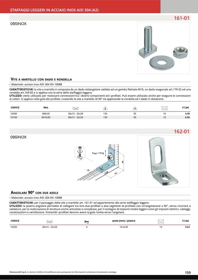 STAFFAGGI LEGGERI IN ACCIAIO INOX AISI 304 (A2)