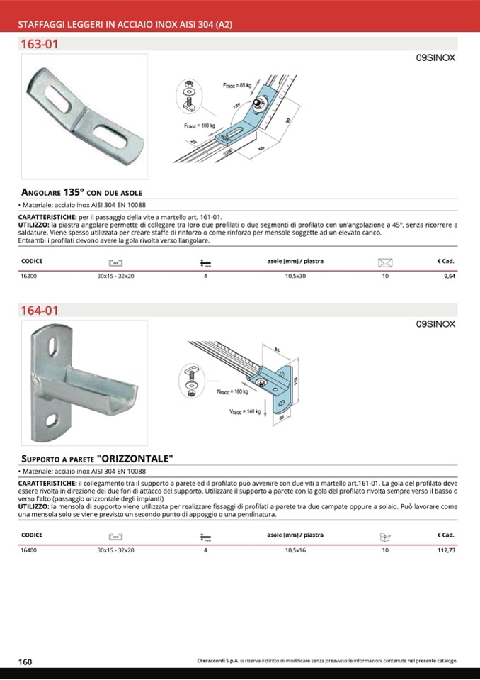 STAFFAGGI LEGGERI IN ACCIAIO INOX AISI 304 (A2)