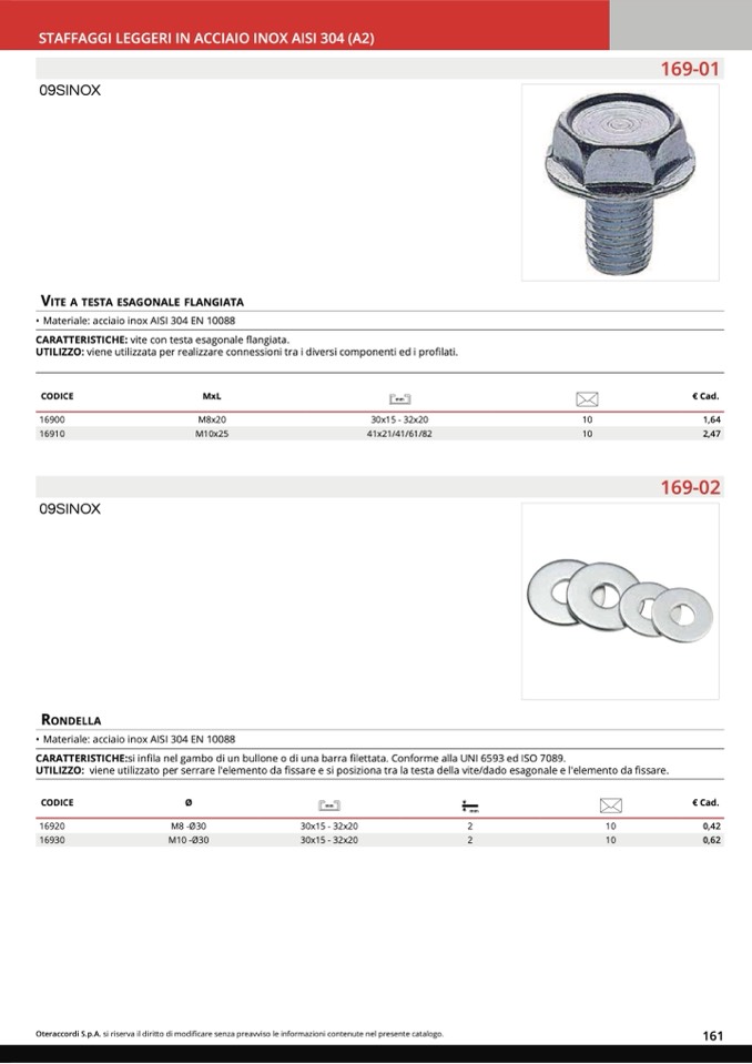 STAFFAGGI LEGGERI IN ACCIAIO INOX AISI 304 (A2)