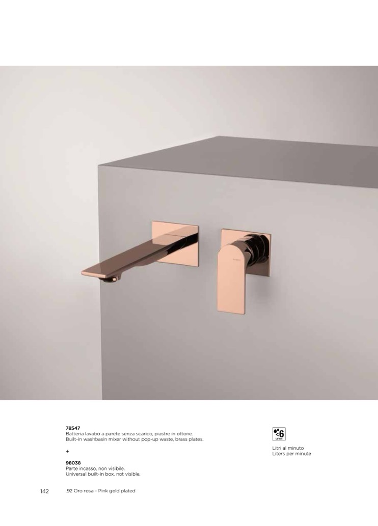 Batteria lavabo a parete senza scarico, piastre in ottone.