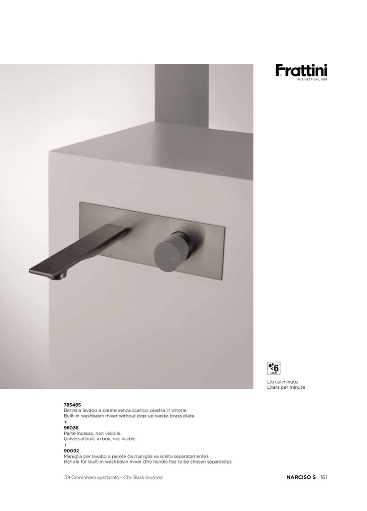 Maniglia per lavabo a parete (la maniglia va scelta separatamente).