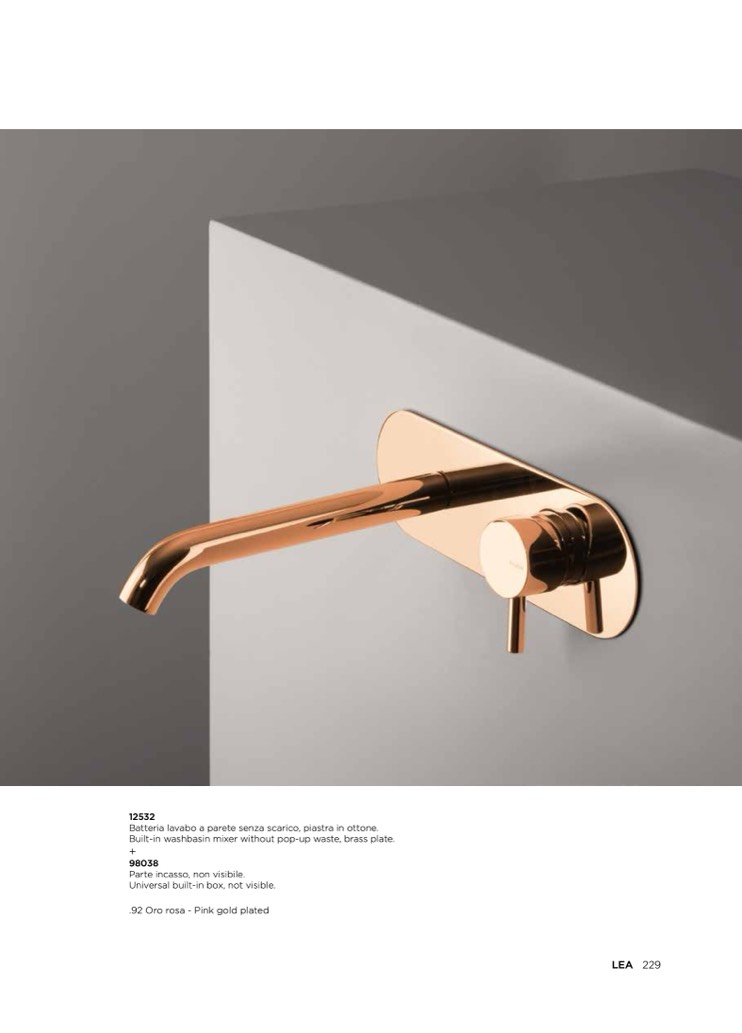 Batteria lavabo a parete senza scarico, piastra in ottone.
