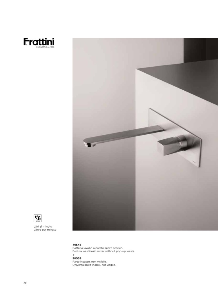 Batteria lavabo a parete senza scarico.