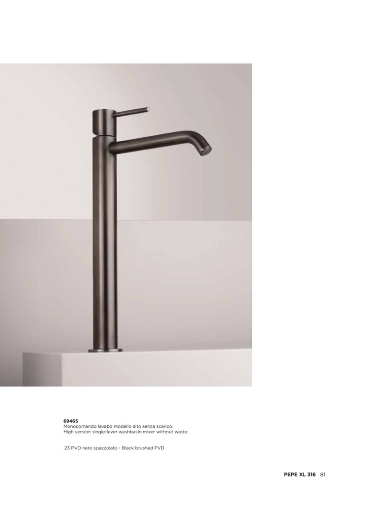 Monocomando lavabo modello alto senza scarico.