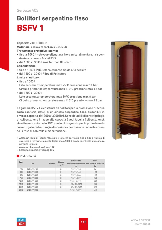 La gamma BSFV 1 è costituita da bollitori per la produzione di acqua
