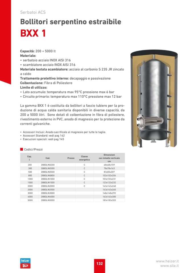 La gamma BXX 1 è costituita da bollitori a fascio tubiero per la pro-