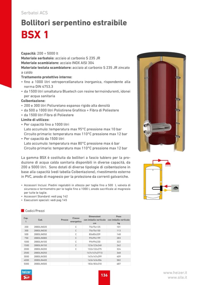 La gamma BSX è costituita da bollitori a fascio tubiero per la pro-