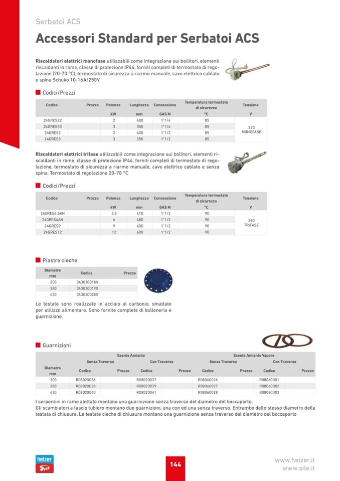 Riscaldatori elettrici trifase utilizzabili come integrazione sui bollitori, elementi ri-