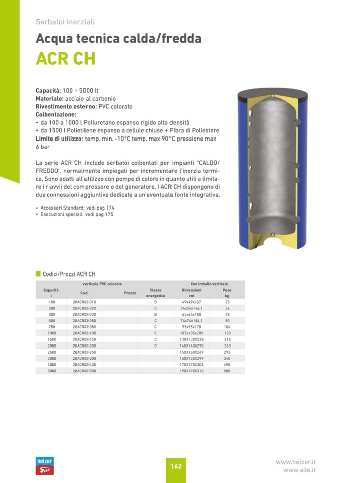 La serie ACR CH include serbatoi coibentati per impianti “CALDO/