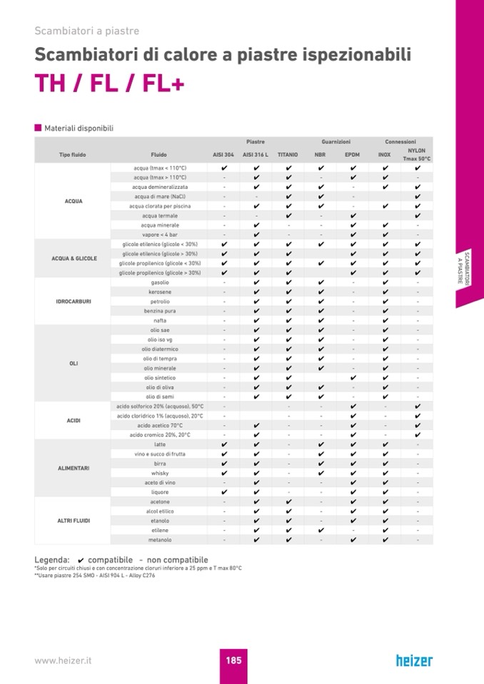 *Solo per circuiti chiusi e con concentrazione cloruri inferiore a 25 ppm e T max 80°C