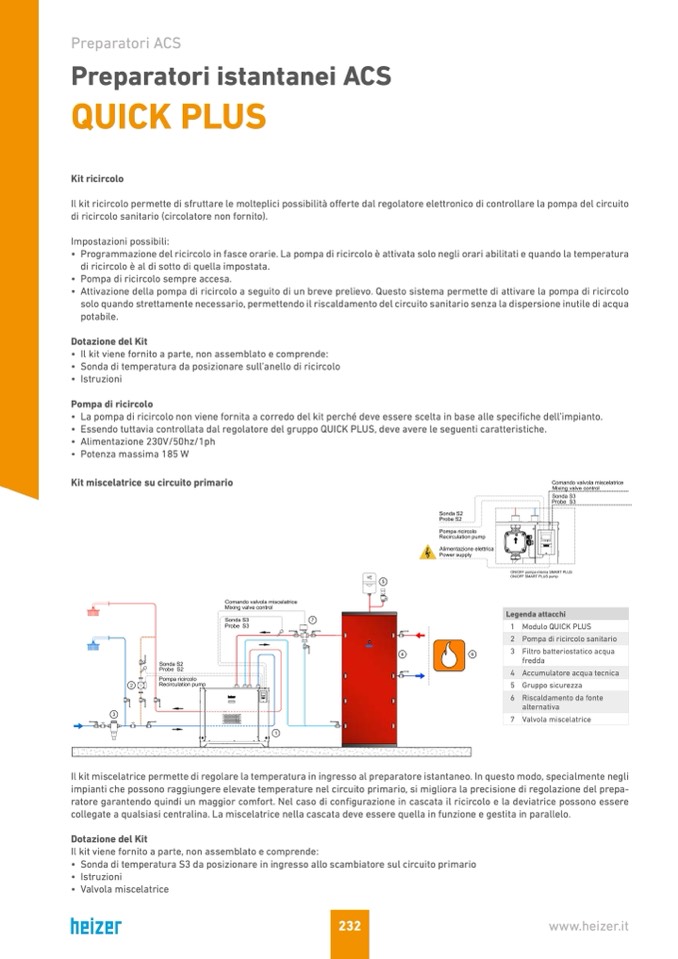 • La pompa di ricircolo non viene fornita a corredo del kit perché deve essere scelta in base alle specifiche dell’impianto.
