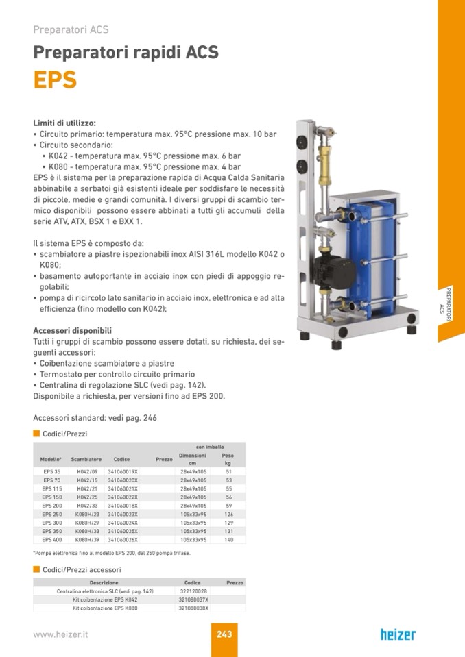 EPS è il sistema per la preparazione rapida di Acqua Calda Sanitaria