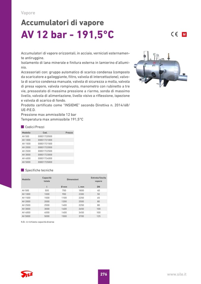 Prodotto certificato come “INSIEME” secondo Direttiva n. 2014/68/
