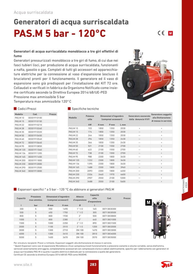 Espansori specifici * a 5 bar - 120 °C da abbinare ai generatori PAS.M