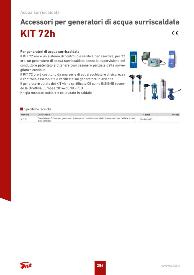 Esercizio per 72 ore per generatori di acqua surriscaldata completo di accessori per caldaia e vaso