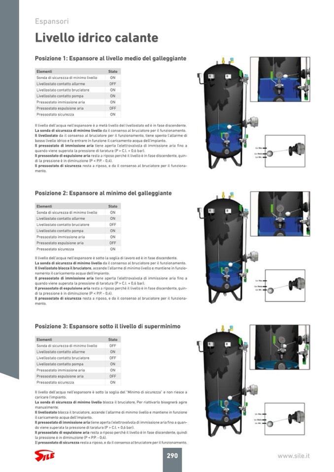 Il livellostato blocca il bruciatore, accende l’allarme di minimo livello e mantiene in funzione