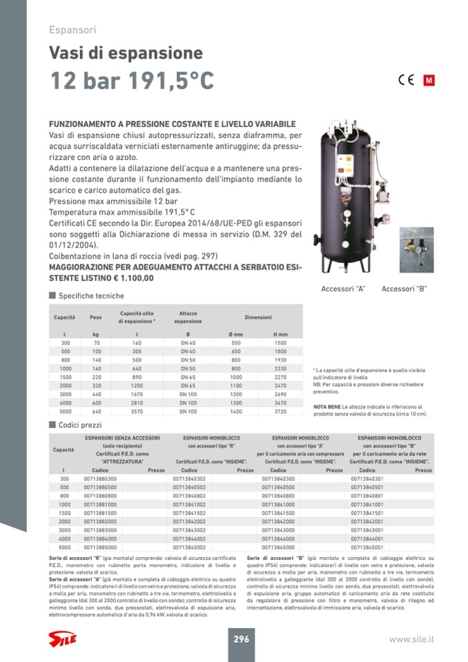 Serie di accessori “R” (gia montata) comprende: valvola di sicurezza certificata