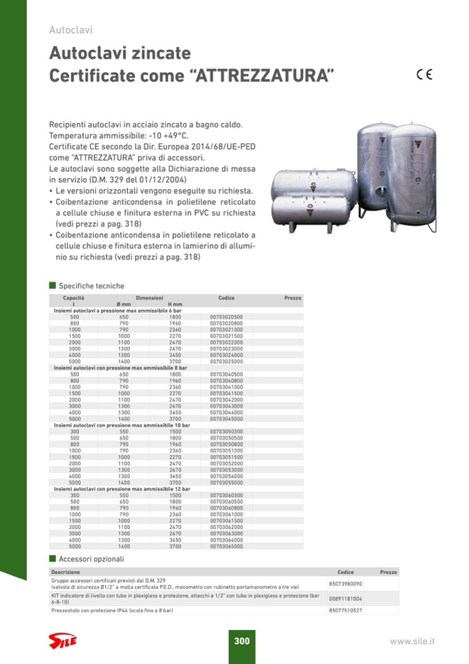 Insiemi autoclavi con pressione max ammissibile 8 bar