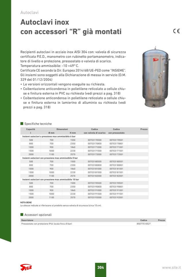 Insiemi autoclavi con pressione max ammissibile 8 bar