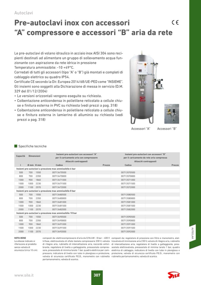 Insiemi pre-autoclavi a pressione max ammissibile 10 bar