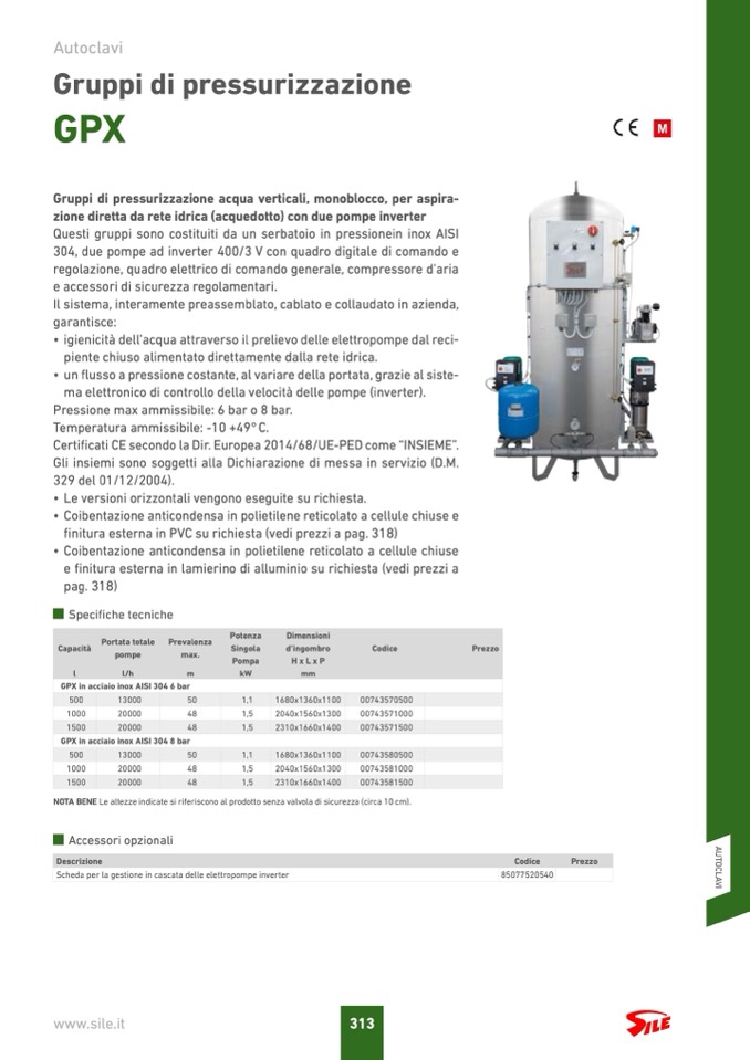 Questi gruppi sono costituiti da un serbatoio in pressionein inox AISI