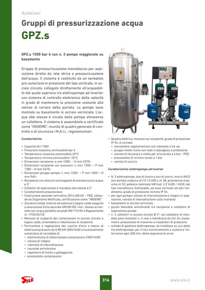 • N. 3 elettropompe, due di lavoro e una di scorta, marca WILO