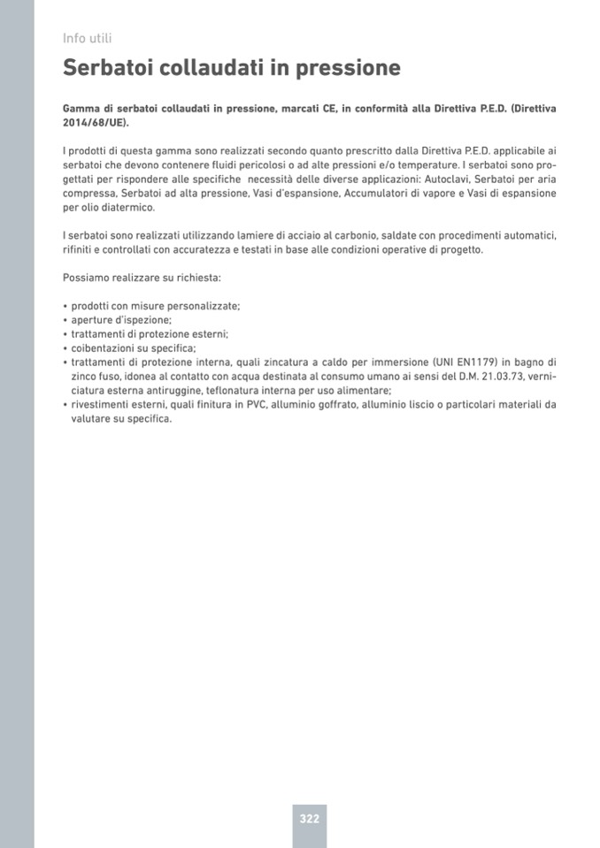 Gamma di serbatoi collaudati in pressione, marcati CE, in conformit