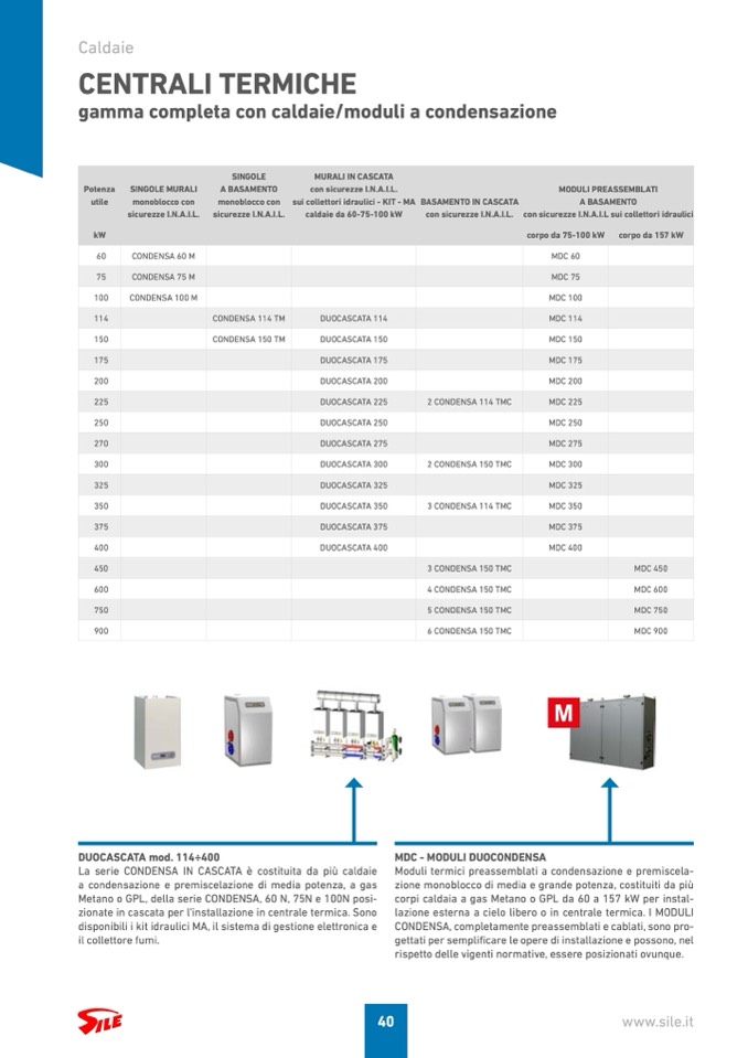 La serie CONDENSA IN CASCATA è costituita da più caldaie