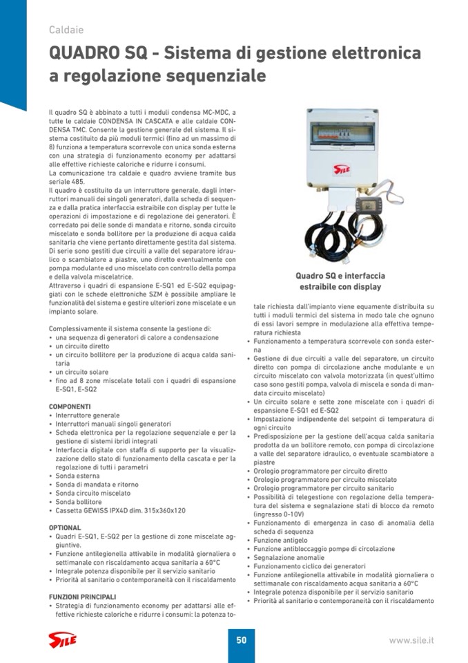 Il quadro SQ è abbinato a tutti i moduli condensa MC-MDC, a