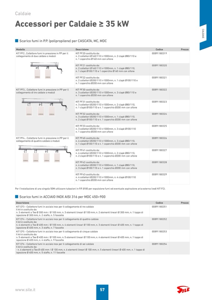 KIT CF6 - Collettore fumi in acciaio inox per il collegamento di sei caldaie