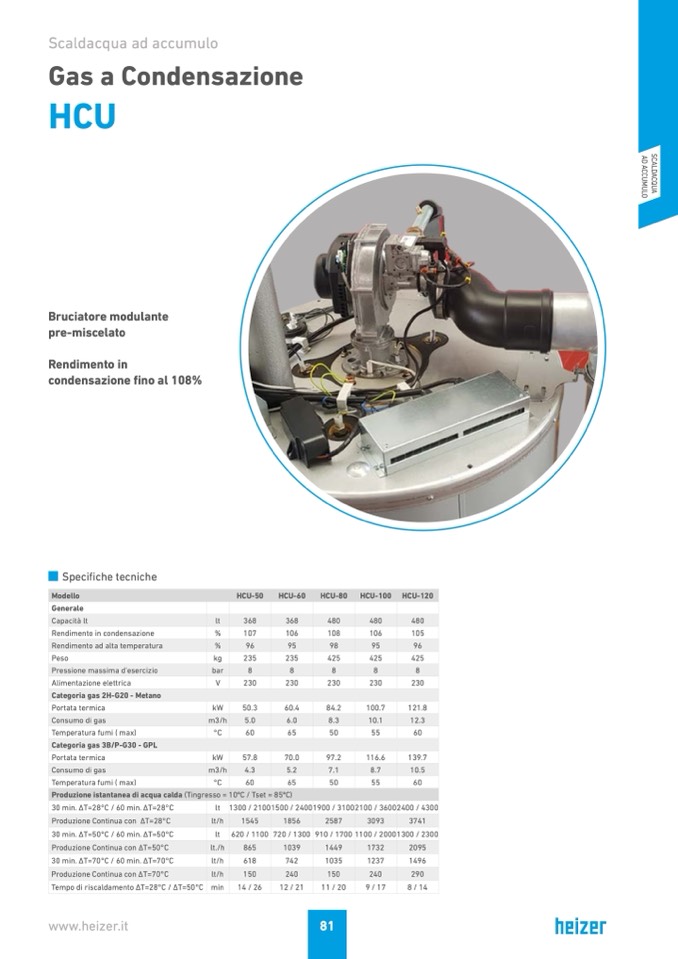 Produzione istantanea di acqua calda (Tingresso = 10oC / Tset = 85oC)