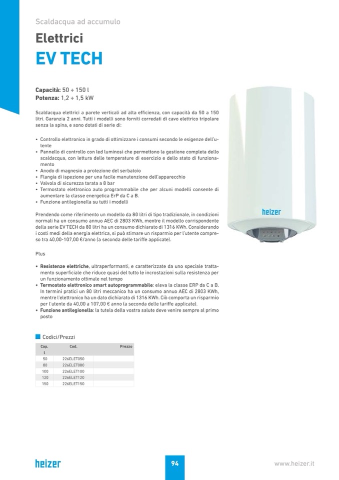 della serie EV TECH da 80 litri ha un consumo dichiarato di 1316 KWh. Considerando