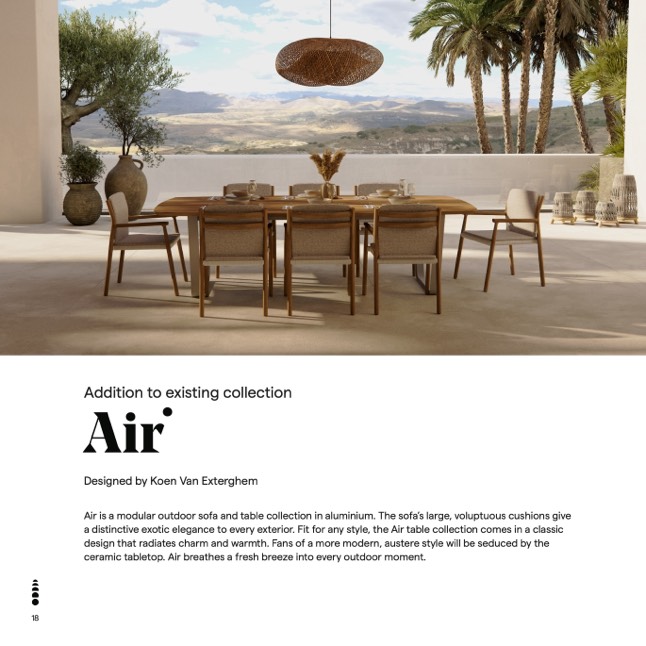 a distinctive exotic elegance to every exterior. Fit for any style, the Air table collection comes in a classic