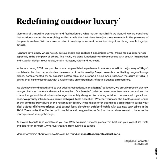 As always, Manutti is as versatile as you are. With exclusive, timeless pieces that best suit your way of life, taste