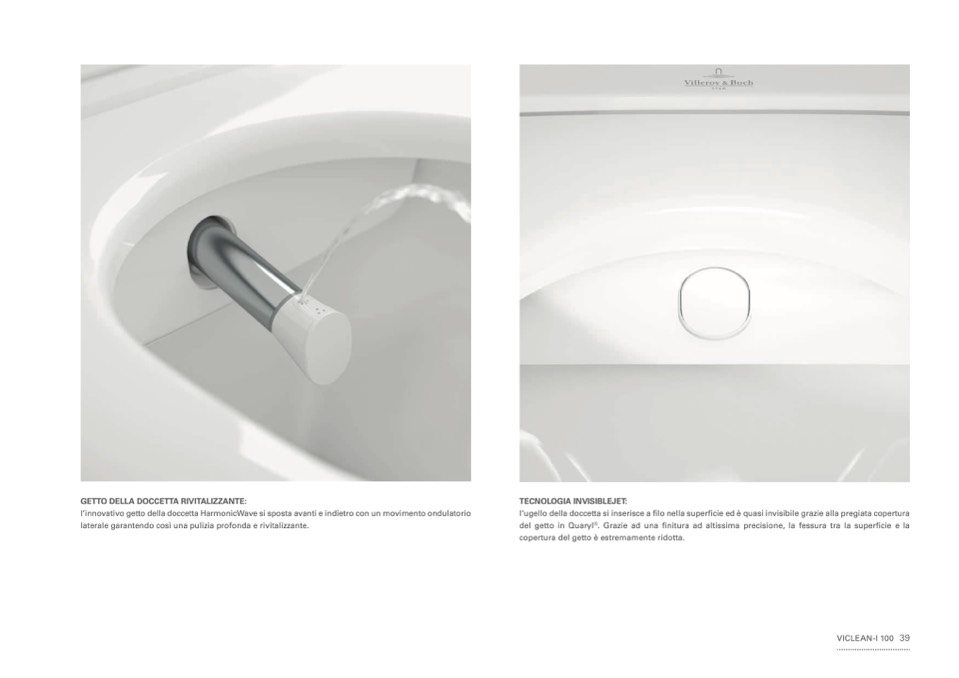 l‘ugello della doccetta si inserisce a filo nella superficie ed è quasi invisibile grazie alla pregiata copertura
