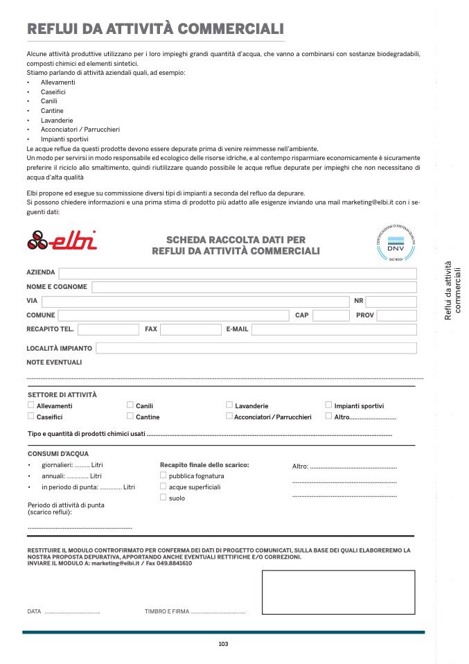 Si possono chiedere informazioni e una prima stima di prodotto più adatto alle esigenze inviando una mail marketing@elbi.it con i se