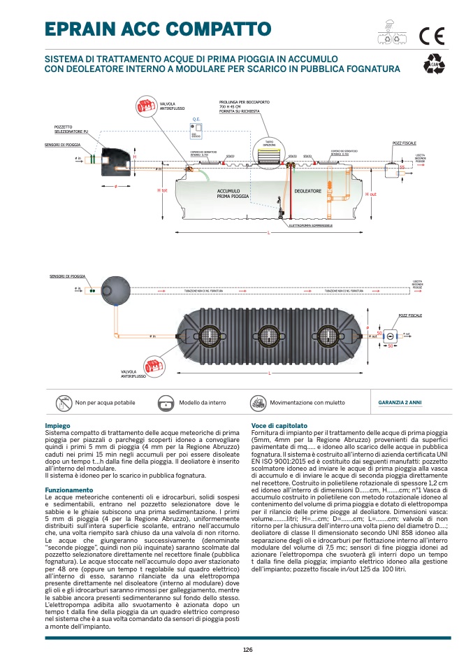 contenimento del volume di prima pioggia e dotato di elettropompa
