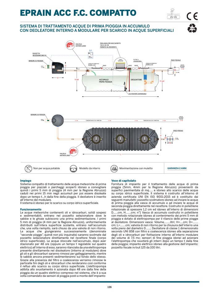 pioggia e dotato di elettropompa per il rilancio delle prime piogge