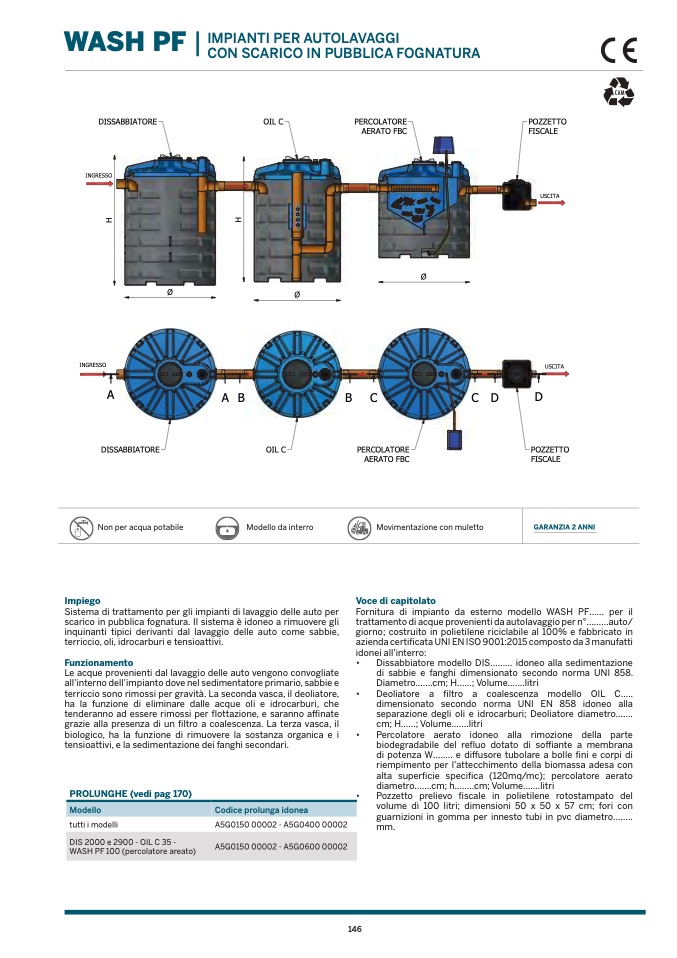 scarico in pubblica fognatura. Il sistema è idoneo a rimuovere gli