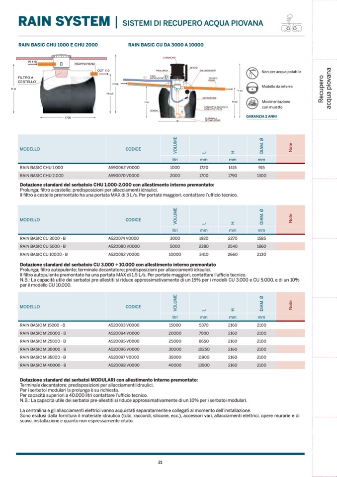 N.B.: La capacità utile dei serbatoi pre-allestiti si riduce approssimativamente di un 15% per i modelli CU 3.000 e CU 5.000, e di un 10%
