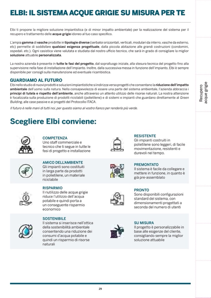 Elbi nello studio di nuovi prodotti e soluzioni impiantistiche si indirizza verso progetti che consentano la riduzione dell’impatto