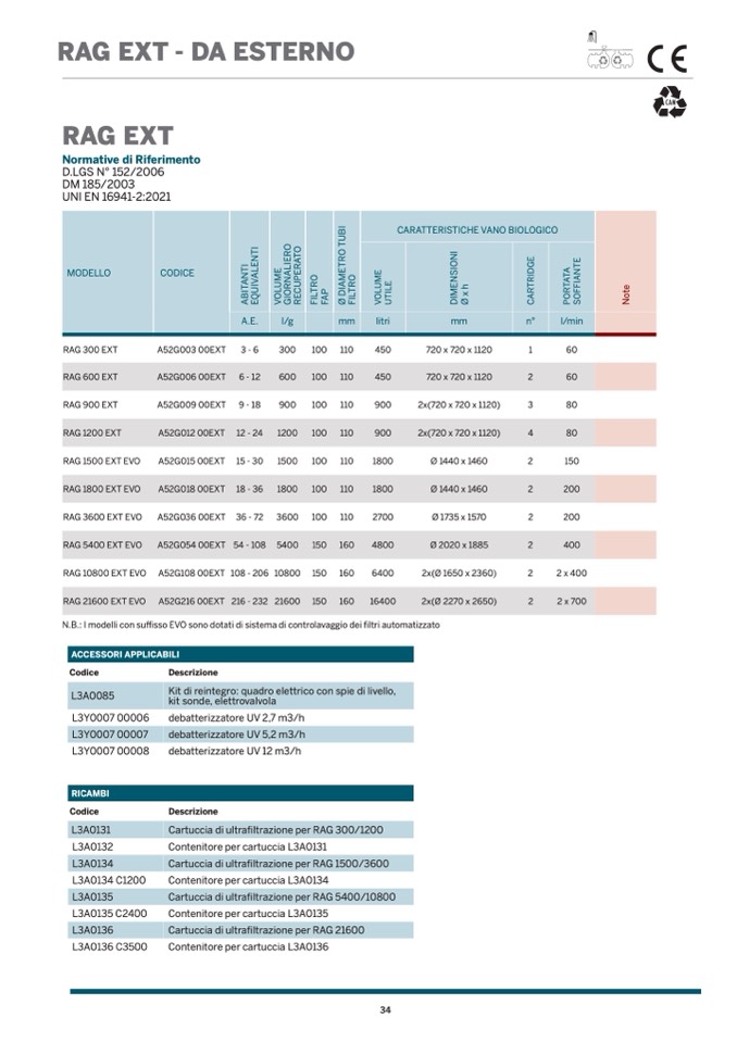 Cartuccia di ultrafi ltrazione per RAG 21600