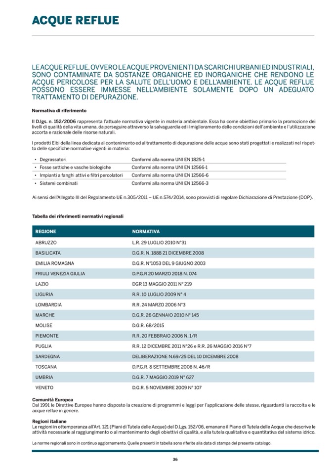 I prodotti Elbi della linea dedicata al contenimento ed al trattamento di depurazione delle acque sono stati progettati e realizzati nel rispet-