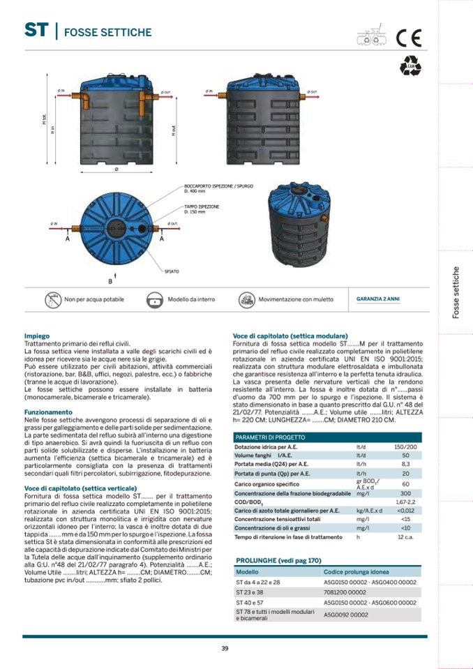 Fornitura di fossa settica modello ST…….M per il trattamento