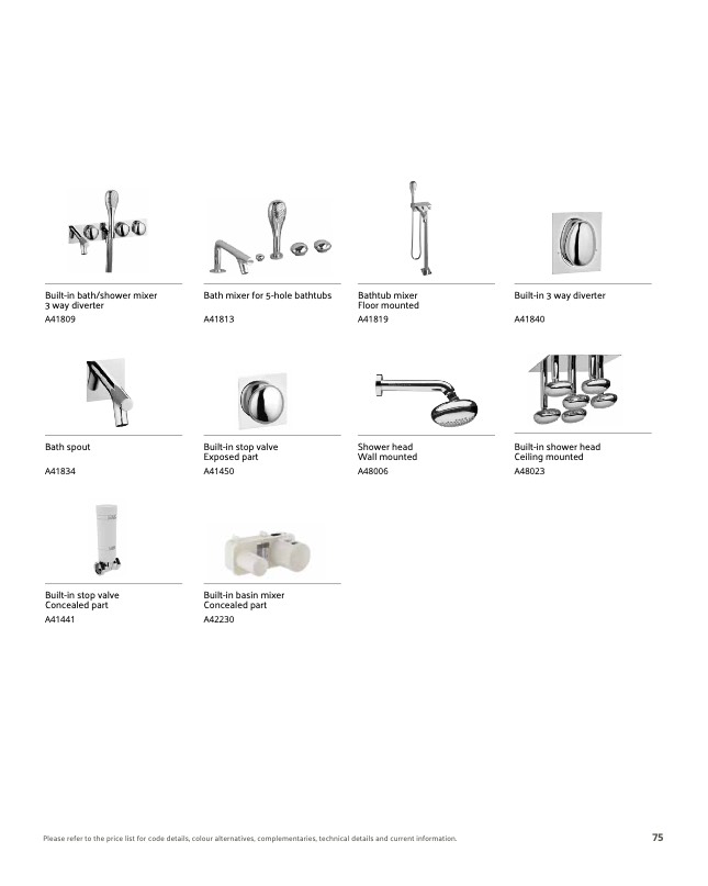 Please refer to the price list for code details, colour alternatives, complementaries, technical details and current information.
