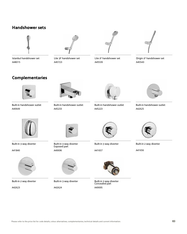 Please refer to the price list for code details, colour alternatives, complementaries, technical details and current information.