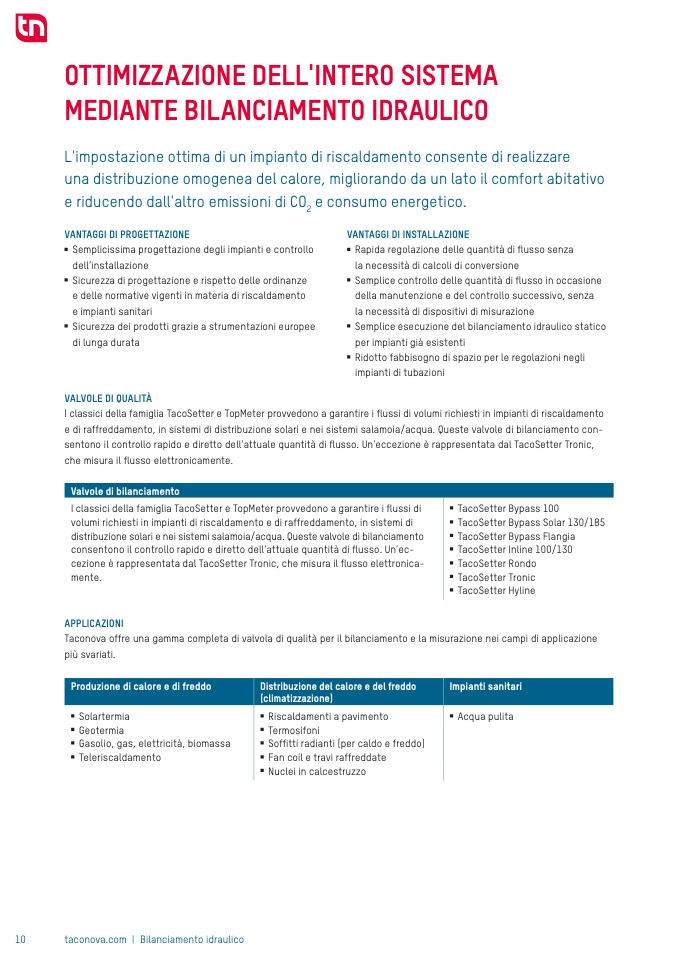 Taconova offre una gamma completa di valvola di qualità per il bilanciamento e la misurazione nei campi di applicazione