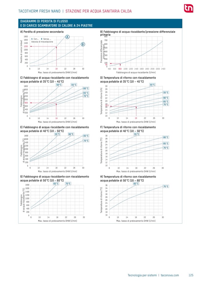 B) Fabbisogno di acqua riscaldante/pressione differenziale